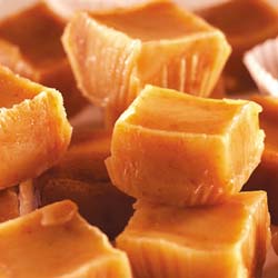 Caramel is a smooth chewy candy made with sugar, butter, cream or milk, and flavoring. It is used as a flavoring in puddings and desserts, as a filling in bonbons, and as a topping for ice cream and custard.The process of caramelization consists of heating sugar slowly. As the sugar heats, the molecules break down and re-form into compounds with a characteristic color and flavor.You can cut the caramel into any size or shape you like